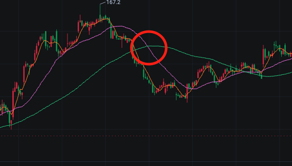 短期線が長期線を下抜ける=「デッドクロス」 → 売りシグナル