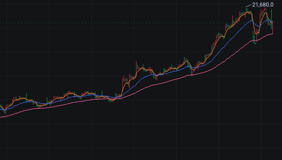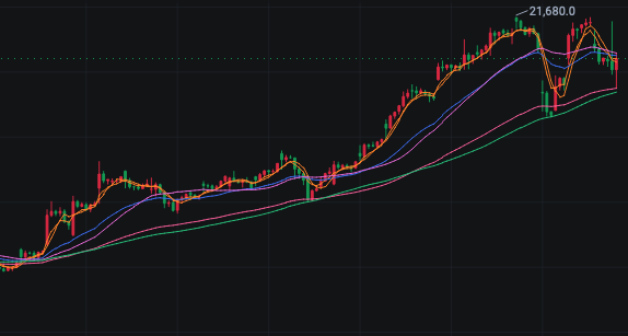 移動平均線とは、一定期間の価格(多くは終値)の平均値を線で結んだものです。