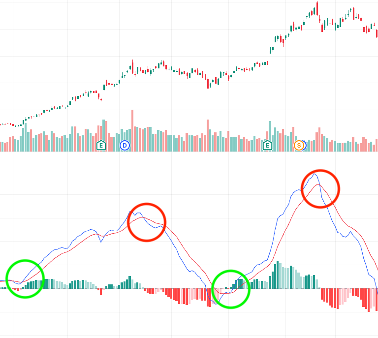 MACDとシグナルのクロス、ヒストグラムの変化を観察